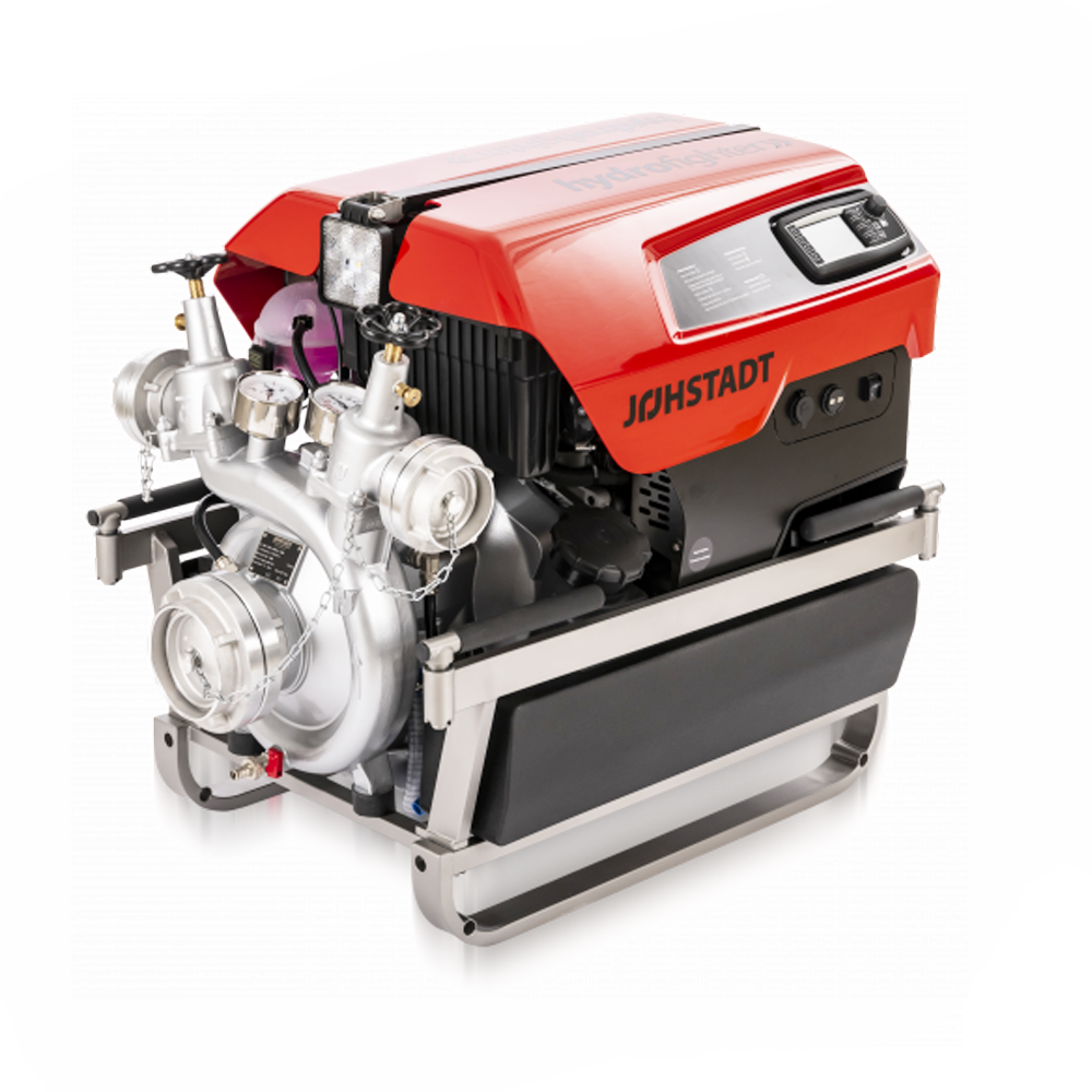 Пожежна відцентрована мотопопомпа JOHSTADT (одноступенева), виготовлена із стійкого до морської води алюмінієвого сплаву.